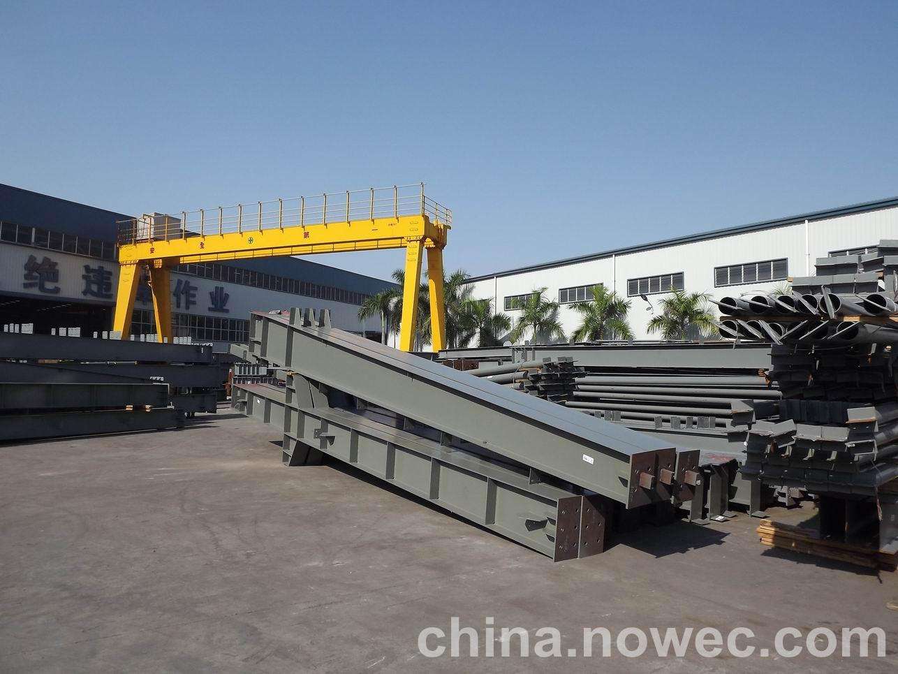 条状单元一般沿长跨方向分割,其宽度约为1~3个网格,其长度为l2或l2/2(l2为短跨跨距)。块状单元一般沿襄阳网架平面纵横向分割成矩形或正方形单元。每个单元的重量以现有起重机能胜任为准。条(块)与条(块)之间可以直接拼装,也可空一网格在高空拼装。由于条(块)状单元是在地面拼装,因而高空作业量较高空散装法大为减少,拼装支架也减少很多,又能充分利用现有起重设备,故较经济。这种安装方法适用于分割后网架的钢度和受力状况改变较小的各类中小型网架,如两向正交正放四角锥、正放抽空四角锥等网架。